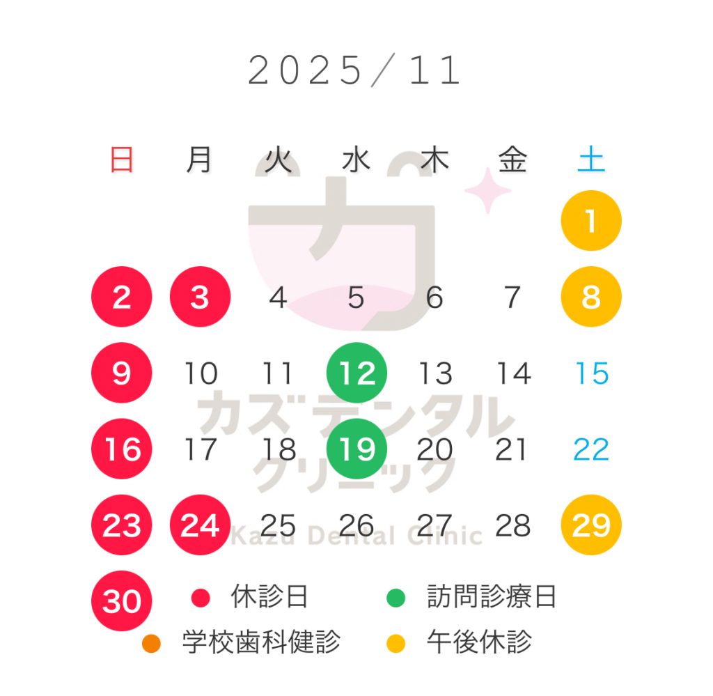 2日(日)、3日(月)、9日(日)、16日(日)23日(日)、24日(月)、30日(日)は休診日となります。